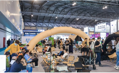 露营展区(露营场景区):户外帐篷、睡袋、户外折叠桌椅、露营推车、旅行袋、毯子、客厅帐/天幕、地钉、露营枕头、露营睡垫/行床、充气泵、防潮垫、地席、户外眼镜、望远镜、冷藏箱、指南针、户外手套、户外手电筒/头灯、户外灯、露营灯/灯条/青蛙灯、应急灯、户外储能设备、新能源光伏板、灯箱、户外电源、户外、户外水、水具、户外手表、毛巾、望远镜、装备袋/工具箱/月光宝盒(RV桶)、收纳篮、露营风扇、野餐垫、露营延长线、品包、装备修补包、防蚊用品、捕蝇工具、指南针/定位系统等。